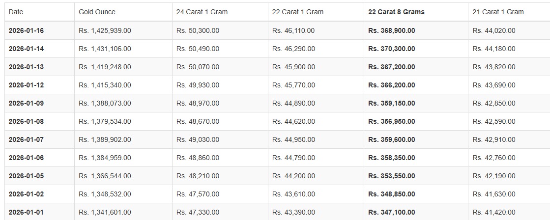 කැරට් 22 සහ 21 ග්රෑම් 1ක මිල පිළිවෙළින් රුපියල් 46,110.00ක් සහ රුපියල් 44,020.00ක් ලෙසයි සඳහන් වූයේ.